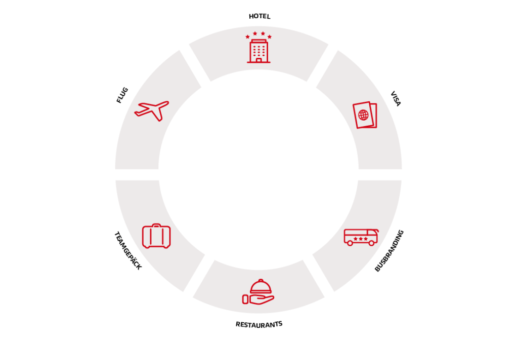 - Planung und Begleitung der Vorbesichtigungen (Hotels, Trainingsplätze, Locations, etc.)